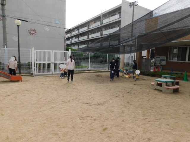 この日は、園庭開放があり、8組の親子の方が遊びに来てくださいました。空が曇っており、秋風が吹くと、少し肌寒く感じましたが、子ども達はすべり台を何回も楽しむなど元気いっぱいの姿が見られました。