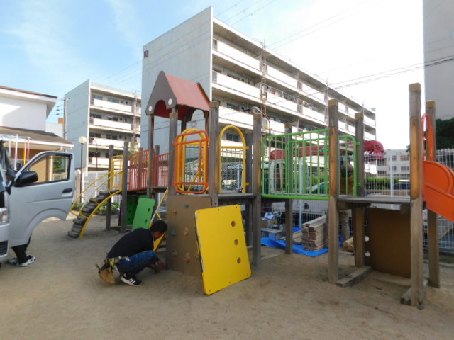たくさんの子ども達に、楽しい思い出を作ってくれてきたこの大型遊具に感謝の気持ちを込めて、この日、大型遊具をお化粧直し(リニューアル)をしました。