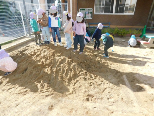 実は、少なくなっていた砂場にも、大量に砂が追加されており、急に現れた大きな砂山に子ども達も大喜び!