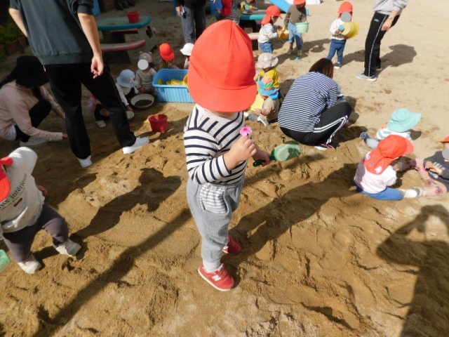 早速、砂山にのぼって砂の感触を楽しむ姿が見られました。