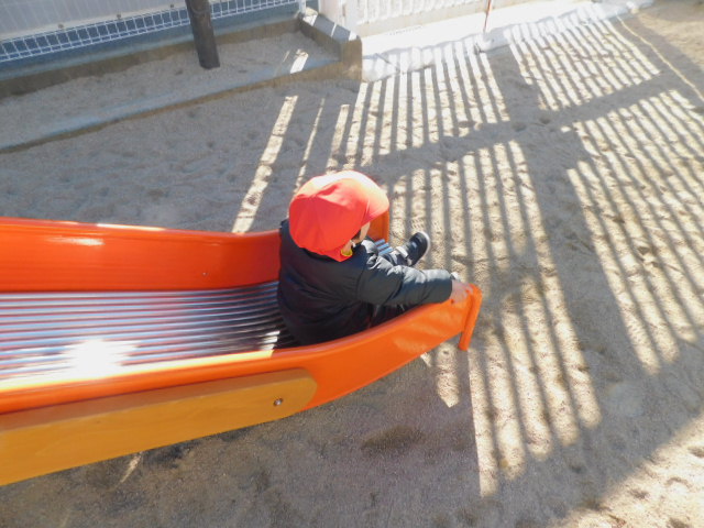 他にも、砂の感触を楽しんだり、久しぶりに大型遊具のすべり台で嬉しそうに滑って遊ぶ子もおり、どの子も温かい日差しの中、気持ちよさそうに過ごしていました。