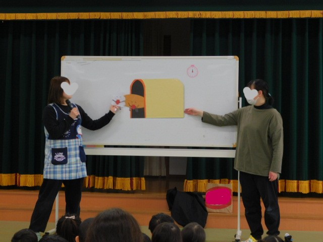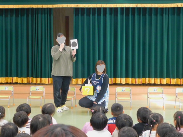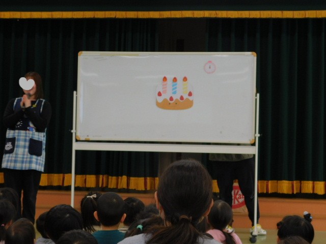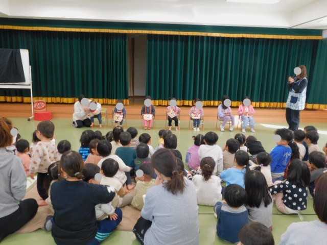 この日は、1月生まれの誕生会があり、ホールに集まって、みんなでお祝いしました。