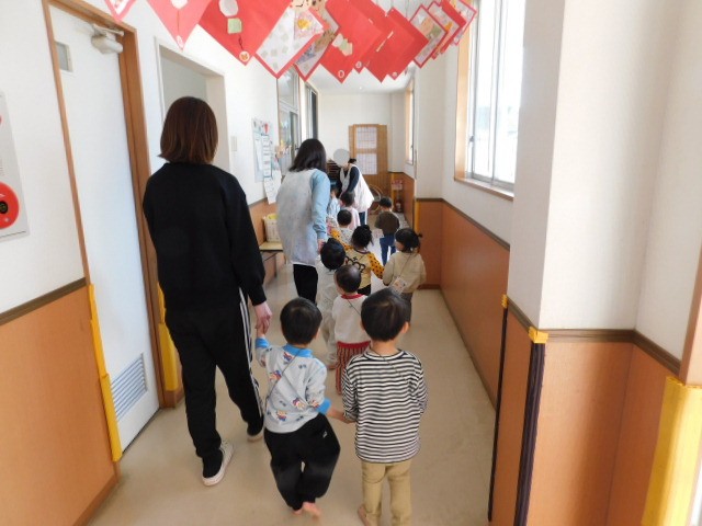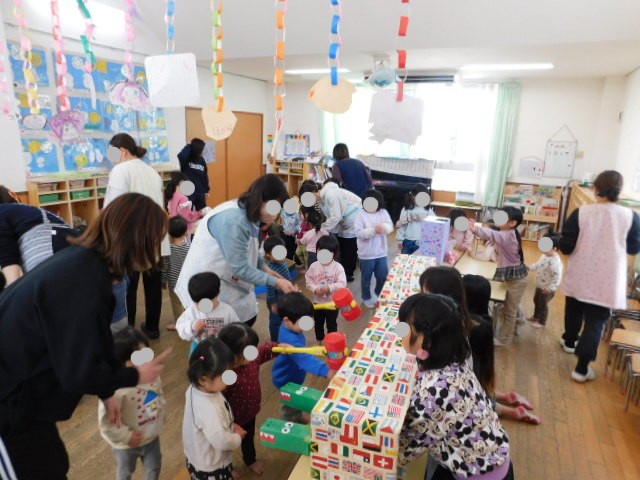 全部のクラスが5歳児クラスを訪れて、この日、賑やかで、とても楽しい1日となりました。5歳児クラスの子ども達にとっても、ステキな思い出の1つになったようで、とても充実したような笑顔をしていました。