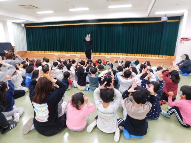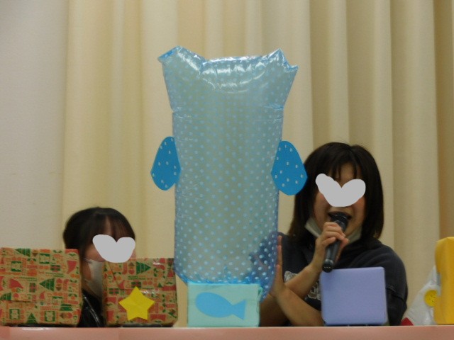 大きなジンベイザメになったり、首の長いきりんになったりして、子ども達も大喜びです。次の箱は何が出てくるのか、みんな目が釘付けでした。