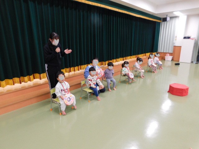 この日、2月生まれの誕生会がありました。2月は誕生児がたくさんいるので、今回は、乳児クラスと幼児クラスに分かれて、2部構成の誕生児紹介をしました。