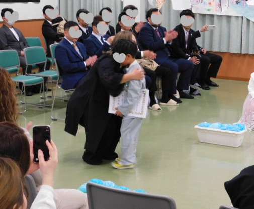 保護者の方も、涙を流しながら我が子をぎゅーっと抱きしめます。照れる子もいましたが、やっぱり嬉しそうです。