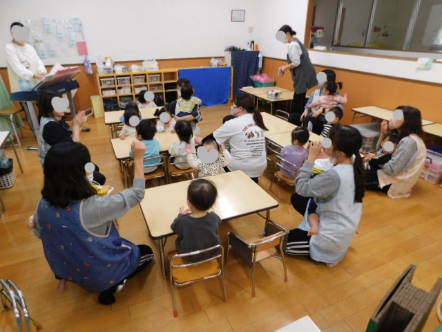 進級した子ども達は、先生達から愛情たっぷり受けて過ごしてきたので、環境が変わり、新入の子ども達に先生達が手を取られていても、不安になることなく機嫌よく過ごしてくれていました。新入の子ども達が降園した後は、先生達に甘えたりしながら、のんびりとした時間を過ごしていました。
