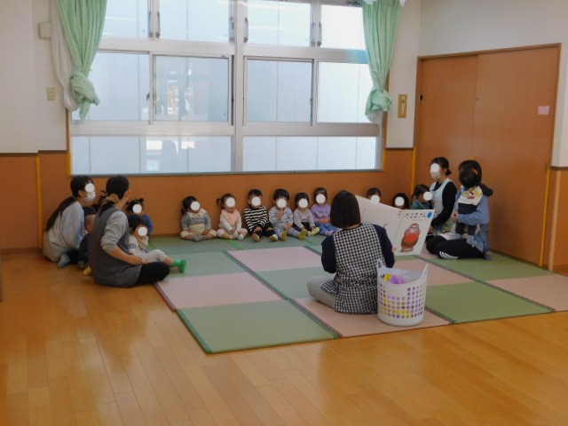 3歳児クラスでは、この日、「はじめて」の英語レッスンがありました。