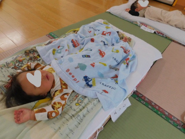 給食の味にも慣れて、しっかり給食を食べるようになると、お腹も満たされ、安心するのか、はじめてのお昼寝も安心してスヤスヤと眠る子もいました。こんな風に「はじめて」の経験を、少しずつゆっくり慣れながら積み重ねていくことで、それが子ども達にとって大きな安心感につながっていきます。